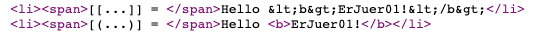 HTML에서는 < 같은 문자를 사용하여 나타내고 있는데 뷰 템플릿으로 HTML 생성 할 경우에도 주의하여 사용해야 한다.