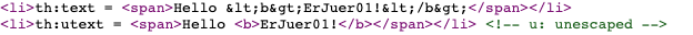 <li>th:utext = <span th:utext="${data}"></span></li> <!-- u: unescaped -->