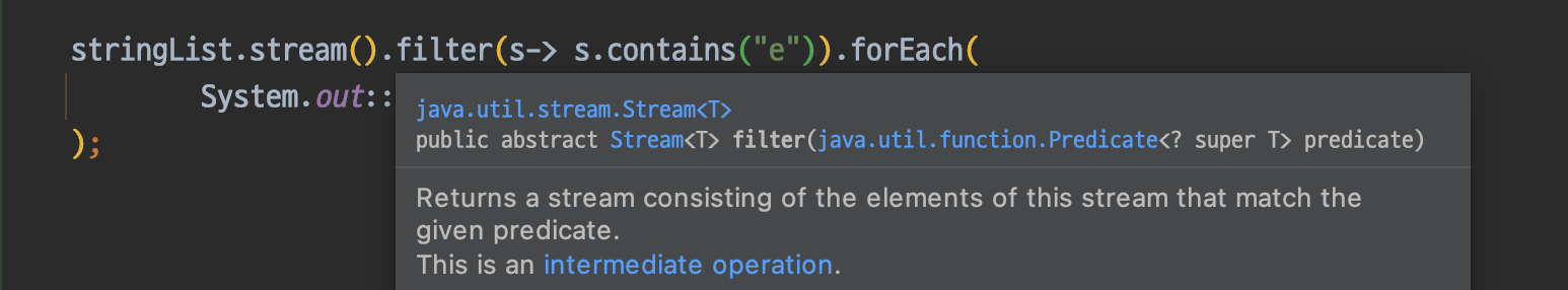 그 이유는 stream의 filter 메소드는 Predicate를 활용하기 때문이다.