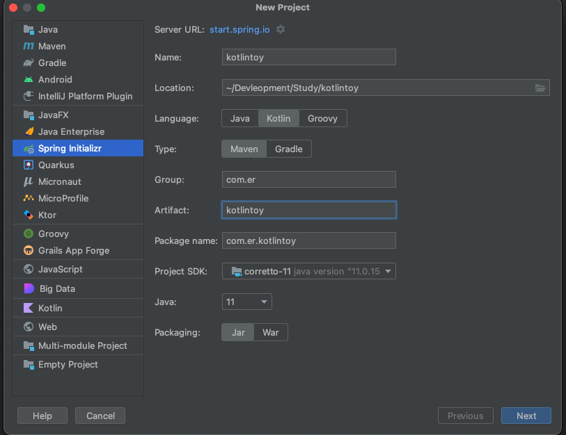Project SDK로는 amazon에서 제공하는 corretto-11을 사용하였다. corretto는 OpenJDK로 Java SE 표준과 호환된다.