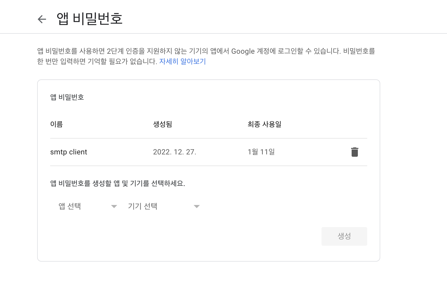 2단계 인증을 본인의 스마트폰이나 테블릿 등으로 진행하고 나면 앱 비밀번호를 설정할 수 있다.