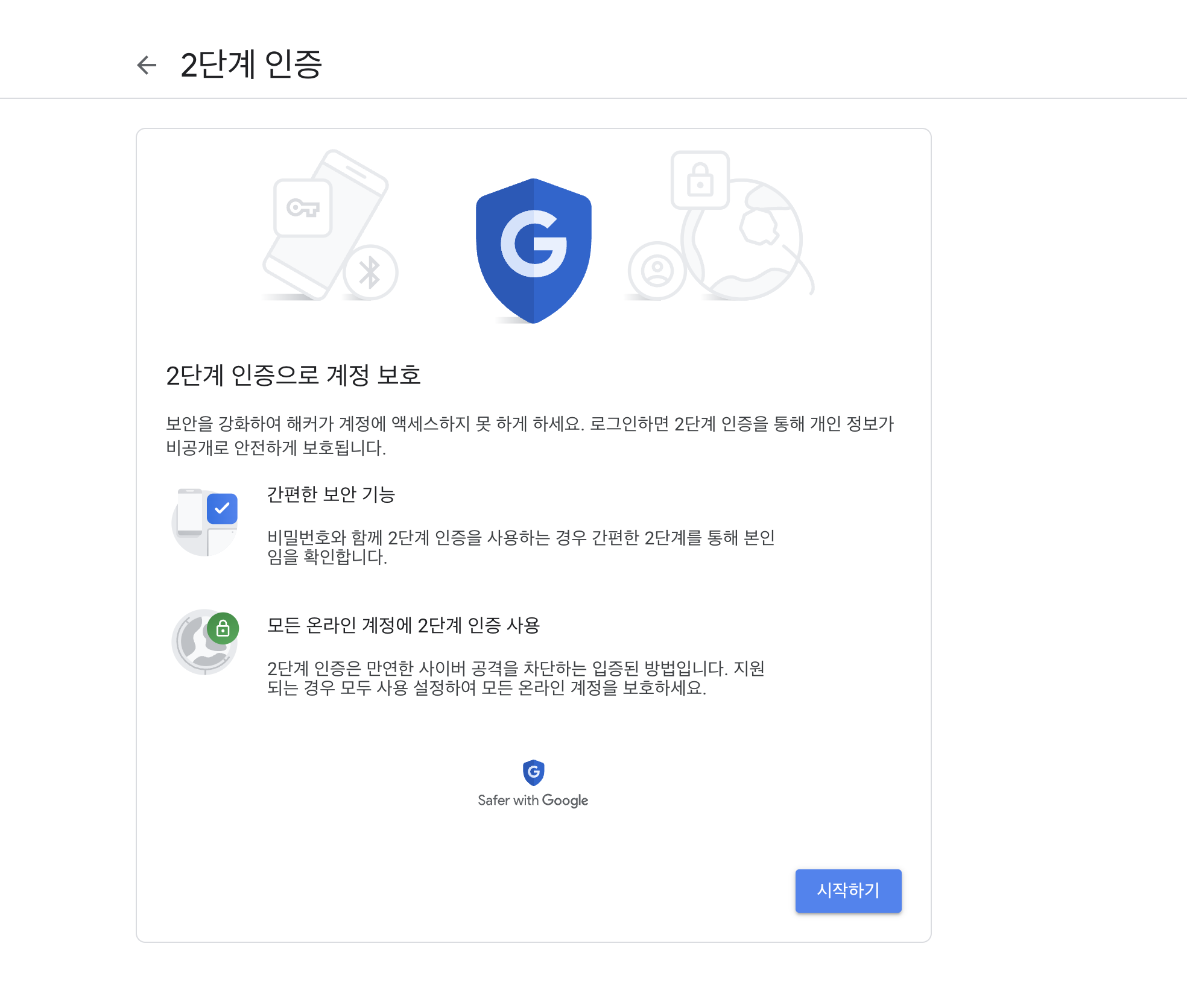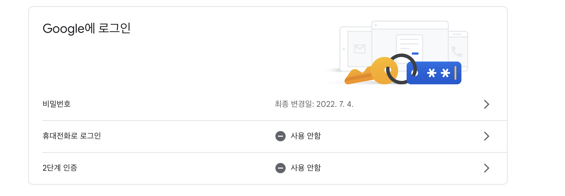 "Google에 로그인"과 밑에 2단계 인증을 확인 할 수 있다.